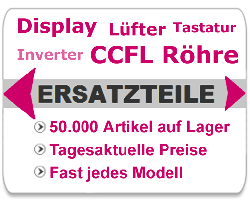 | Wir haben die passenden Ersatzteile für jedes Notebook. In unserem Webshop sind über 36.000 Ersatzteile gelistet. Dazu gehören u.a.: Displays, Tastaturen, Akkus, Inverter, CCFL-Röhren, Laufwerke, Netzteile, Caradapter, Displaykabel und viele andere Ersatzteile.